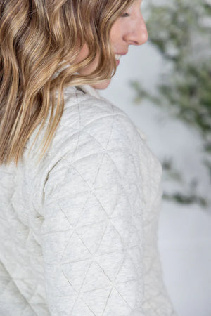 This Geometric Button Snap Pullover is a luxurious combination of class and femininity. Experience the chic of quilted fabric adorned with a geometric pattern, topped of with a fabric that feels like a cloud. Button snap closure and convenient front pocket. Feel your best in this sophisticated and exclusive pullover!