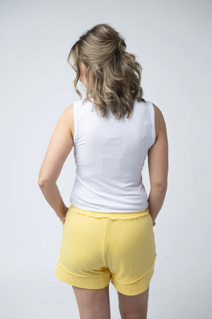 Upgrade your casual wear with the Stevie Shorts. These shorts are made from super soft French terry fabric and include a functioning drawstring, pockets, and a double elastic top band for extra hold. The classy side scoop detail adds a stylish touch.