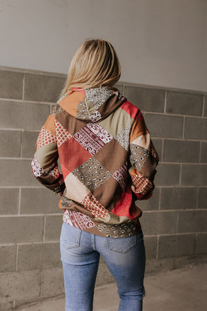 The Patchwork Princess university hoodie, from the Spice, Spice Baby collection, is a Patchwork design in fall color pallet with lace drawstrings.