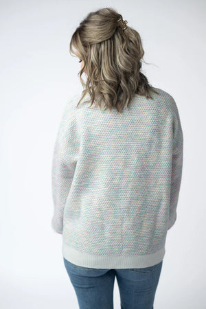 Layer up with the Kinsley Cardigan, your new spring essential! This mid-weight open cardigan features a cheerful ivory base accented with vibrant pops of pink, blue, purple and yellow for a fun, fresh look. Practical front pockets keep your hands cozy while you're on the go. Perfect for throwing over your favorite tee or dress when the weather calls for an extra layer of warmth.