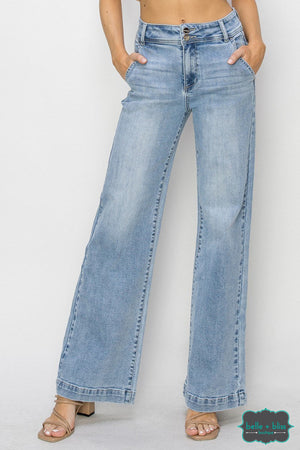 Risen "Atlas" High Rise Wide Leg Double Button - Light Wash