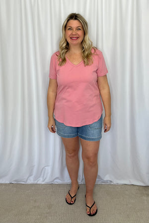Everyone needs a perfect basic tee in their closet! The Avalyn short sleeved tee has a v-neck, scoop hemline and pairs beautifully with pretty much anything... we love it with denim and looks great layered under a cardigan or worn on its own.