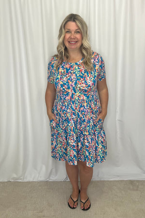 The Marcia Dress features a crew neck, short sleeves, a beautiful floral print, and is made of a buttery soft material! Plus it has pockets! It looks great under a cardigan, denim jacket, shacket or simply worn on its own!