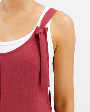 Shorts lightweight romper. Tie shoulder straps for fully customized fit by knotting through slit opening. Lightweight, woven material with texture. Fabric does not have stretch. Casual, true to size fit. Purchase by your normal bottoms sizing.