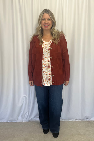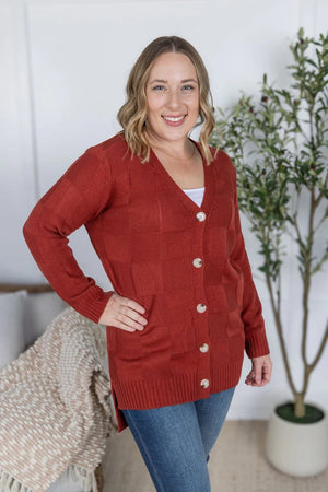 Get ready to turn heads with the Chelsea Checkered Cardigan! You are going to love the subtle checkered texture and button up detail. And that high/low hemline with side slits - gorgeous!