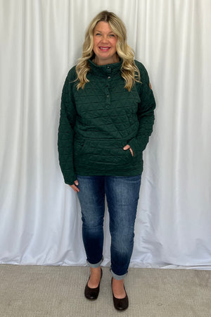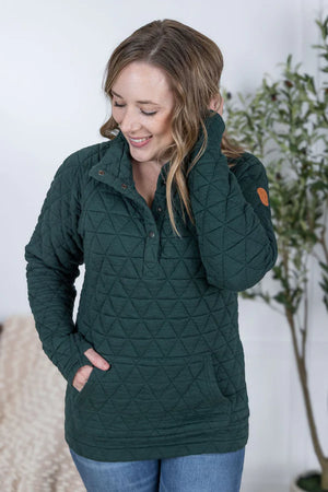 This Geometric Button Snap Pullover is a luxurious combination of class and femininity. Experience the chic of quilted fabric adorned with a geometric pattern, topped of with a fabric that feels like a cloud. Button snap closure and convenient front pocket. Feel your best in this sophisticated and exclusive pullover!