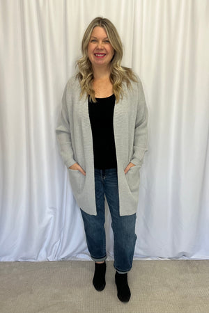 Conquer your day with the Layla Sweater Cardigan in Grey. This open-front cardigan features two pockets, perfect for carrying your essentials on the go. Its grey color adds a touch of sophistication while keeping you cozy and stylish. Take on any adventure with this versatile and practical piece!