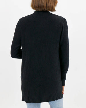 Waterfall style cardigan robe wrap. Cowl neck snap feature and functional side pockets. Bambu fabric has great stretch and hand feel. Cozy relaxed oversized fit. Size down if between sizes or if you desire a slimmer fit.