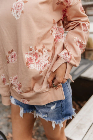 Soft, sweet, and effortlessly feminine — this pullover is what cozy dreams are made of. Featuring a creamy peach base with a delicate floral print, it’s the perfect blend of comfort and charm. The relaxed fit keeps it comfy, while the side slits add that flattering, easy-to-wear touch we love. Pair it with your favorite denim or leggings for a look that feels like spring, any day of the year.