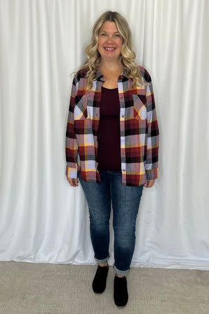 The classic flannel top, but better! Introducing the Northern Plaid Flannel Top, made with our soft light weight flannel material in a comfortable, true to size fit that makes this button up top a new go-to!