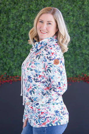 This funnel neck is the definition of soft and cozy (like a hug from a fluffy puppy). Feel pampered while staying warm and stylish with this fun Christmas design. The base of this funnel neck is black, with colors of red, ivory, blue, and marron mixed in this pattern. Perfect for lounging around or layering up for a brisk outdoor adventure.