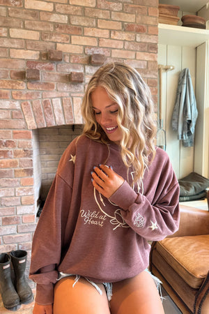 Cozy up in western-inspired style with this graphic sweatshirt! Featuring playful rodeo-themed embroidery and star details on the sleeves, this soft, relaxed-fit pullover brings all the laid-back cowgirl vibes.